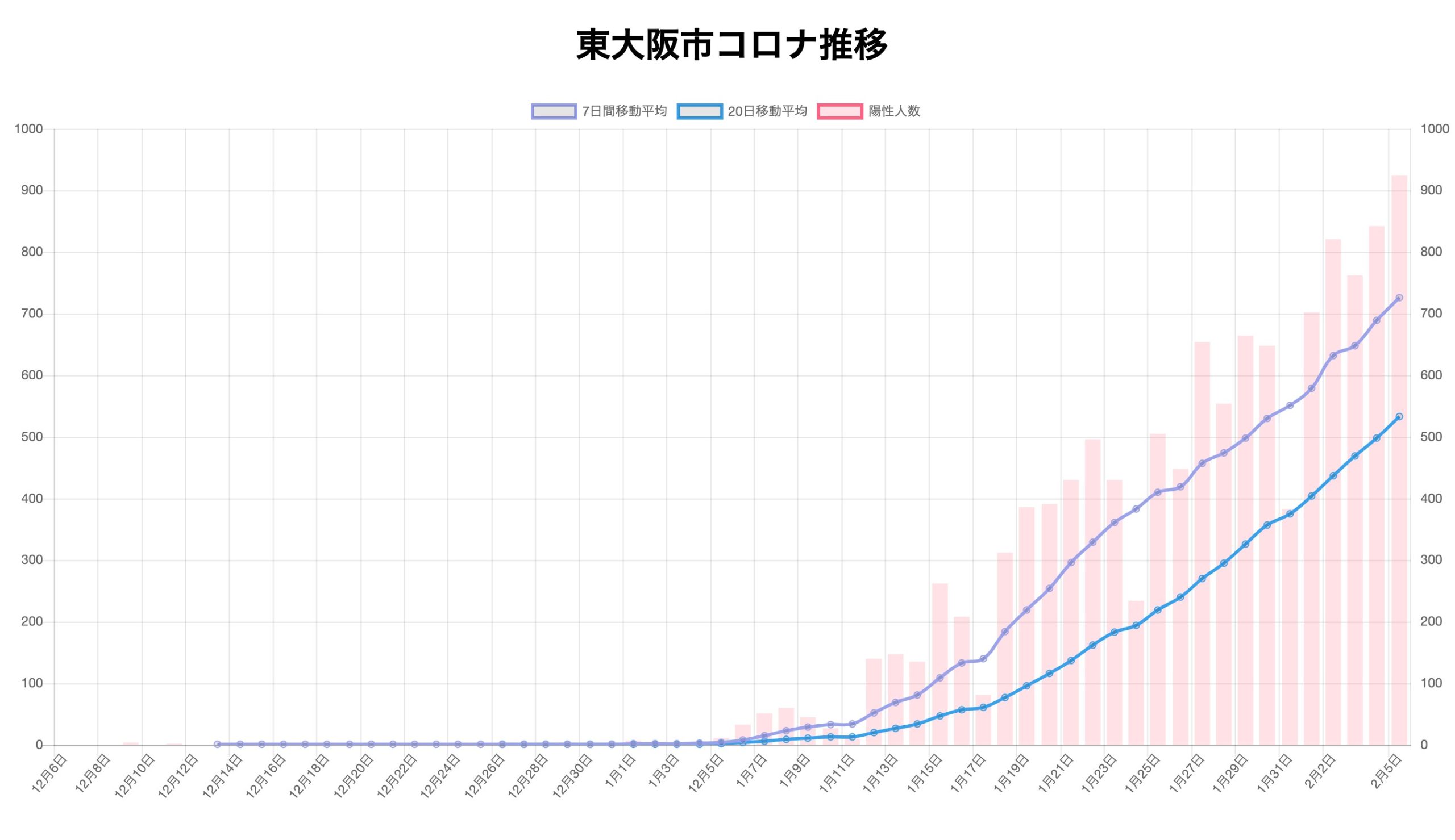 From January 15, 2021, the moving averages for the past 7 days and 20 days are posted along with the number of new positives. We are looking at trends from short-term trends and long-term trends. It has been increasing rapidly since around January 4th. Let’s take measures to prevent infectious diseases and try to prevent the spread of infection.
