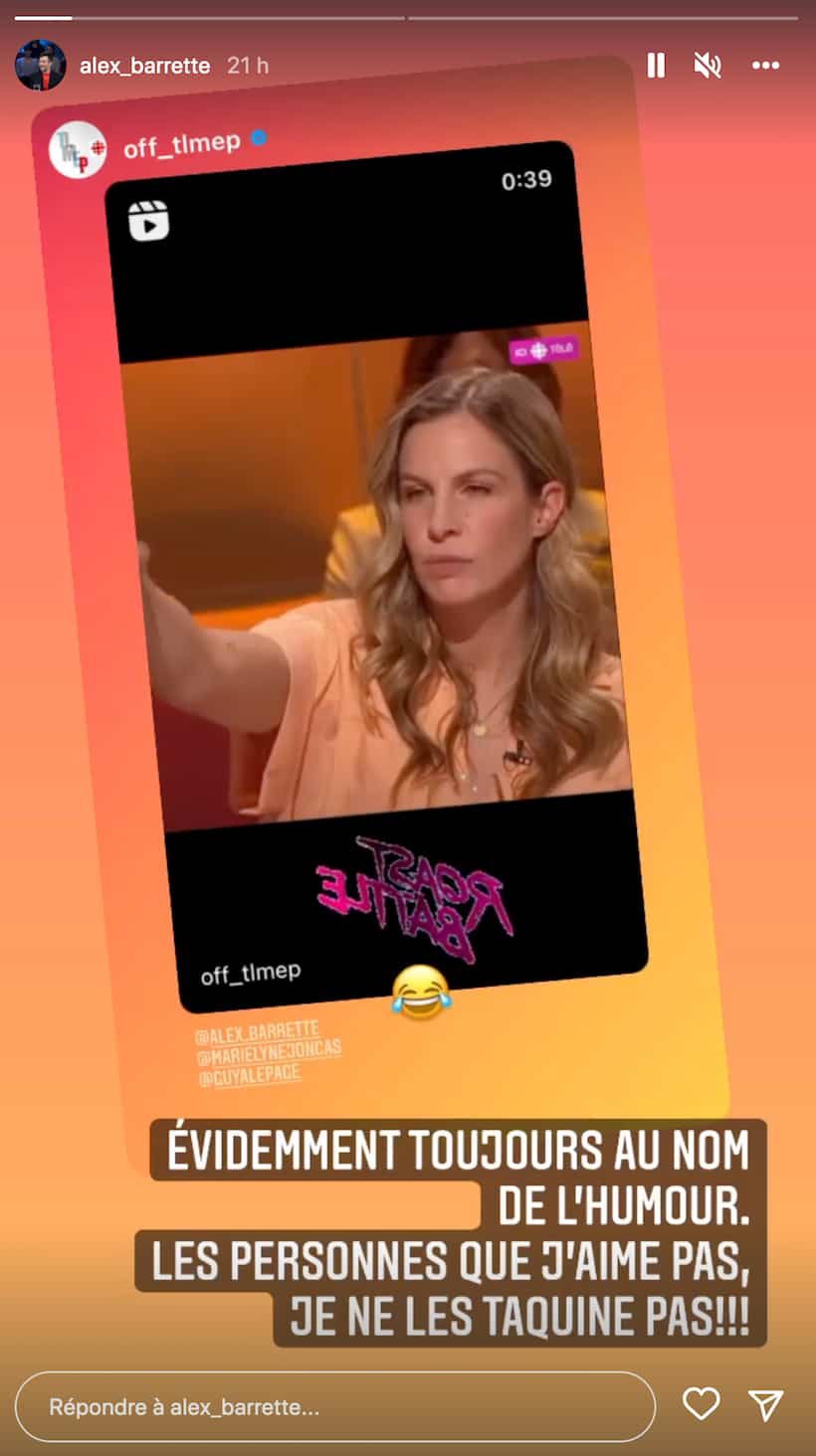 Definitely, Alexandre Barrette was in good shape on Sunday evening and his presence on the set caused a lot of talk. In addition to having created a joyful unease during the interview with José Gaudet, the rotating jester engaged in a muscular (and funny) exchange with Marie-Lyne Joncas and wanted to come back to it on Tuesday.