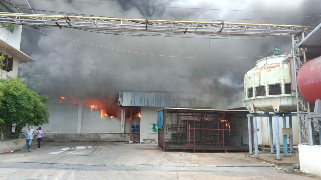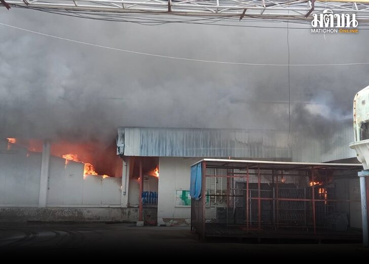 for such companies With a total area of 14 rai, extensive damage Initially, no injuries were reported. or installed inside the factory The nearby Ekachai Hospital moved the patients to a safe location. Because during the incident, there was a cloud of black smoke and a strong burning smell.