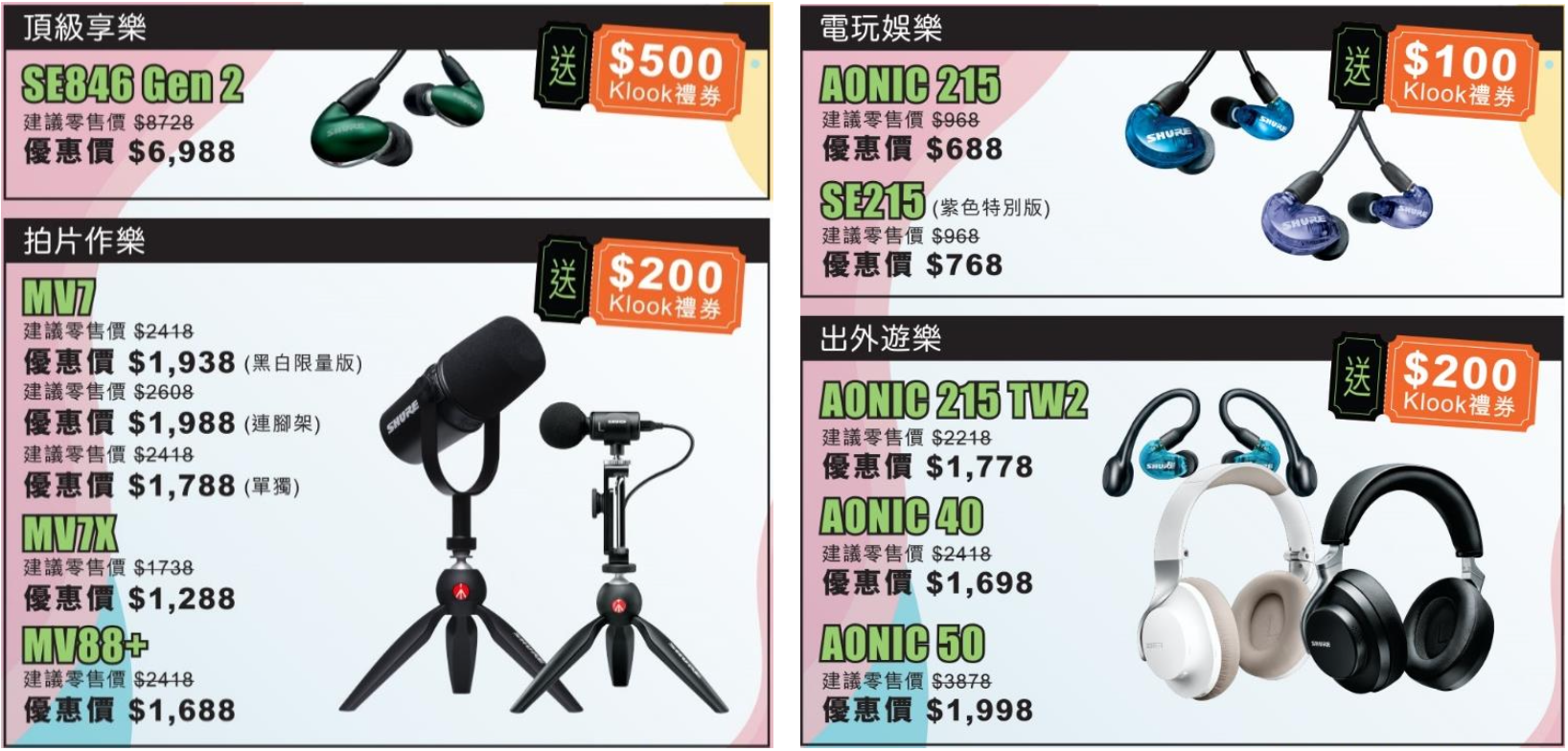 In recent years, due to the impact of the epidemic, many people’s lives have been restricted. However, as the epidemic is gradually brought under control, life is gradually returning to normal, and the whole of Hong Kong is filled with a happy atmosphere. In order to console everyone for 3 years of boring and boring life, Shure specially launched the “Carpe Diem” shopping discount. Now, if you buy designated models of sound-isolating headphones, headphones and microphone products, you can enjoy Klook gift certificates up to $500. Let consumers enjoy tourist attraction tickets, entertainment experience and food anytime, anywhere.