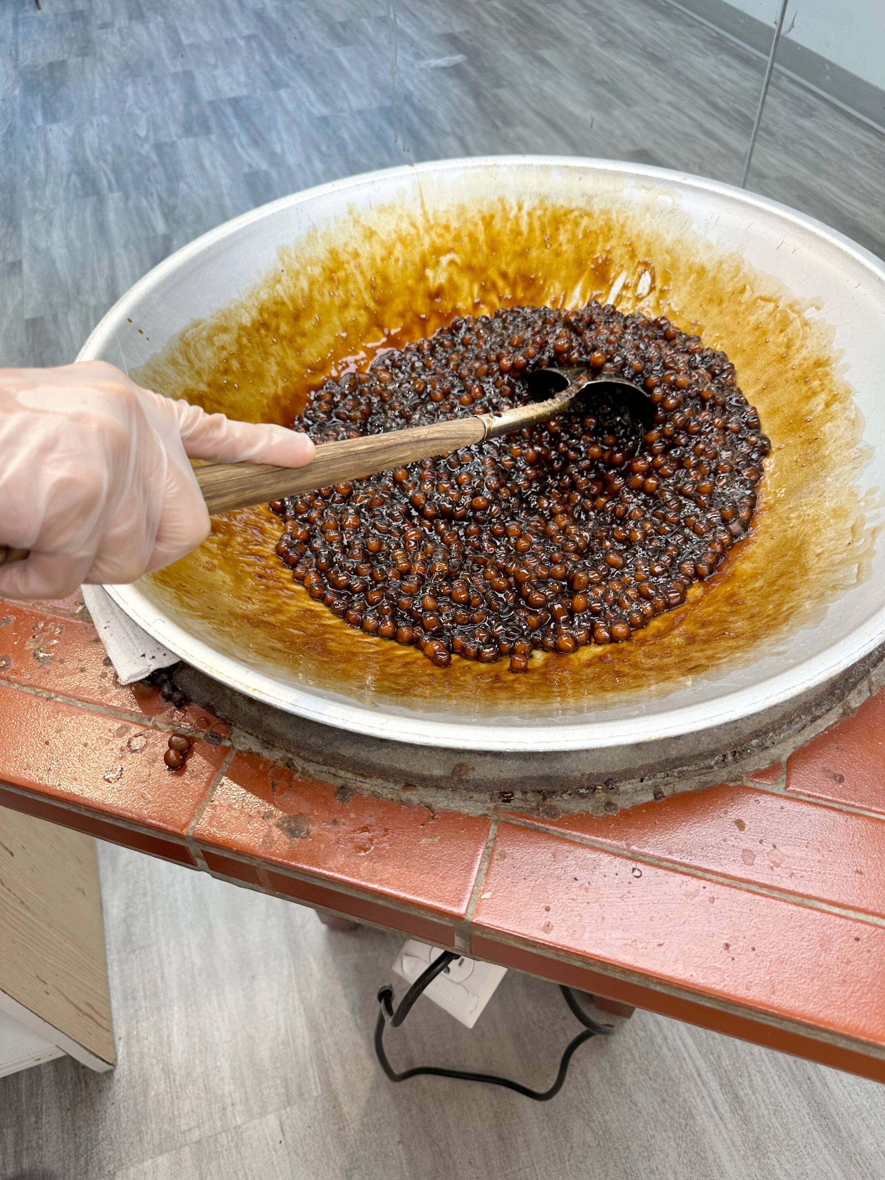 On the counter at Xing Fu Tang, a large container holds the mixture of pearls marinated in Taiwanese brown sugar syrup. Louis-Philippe Messier