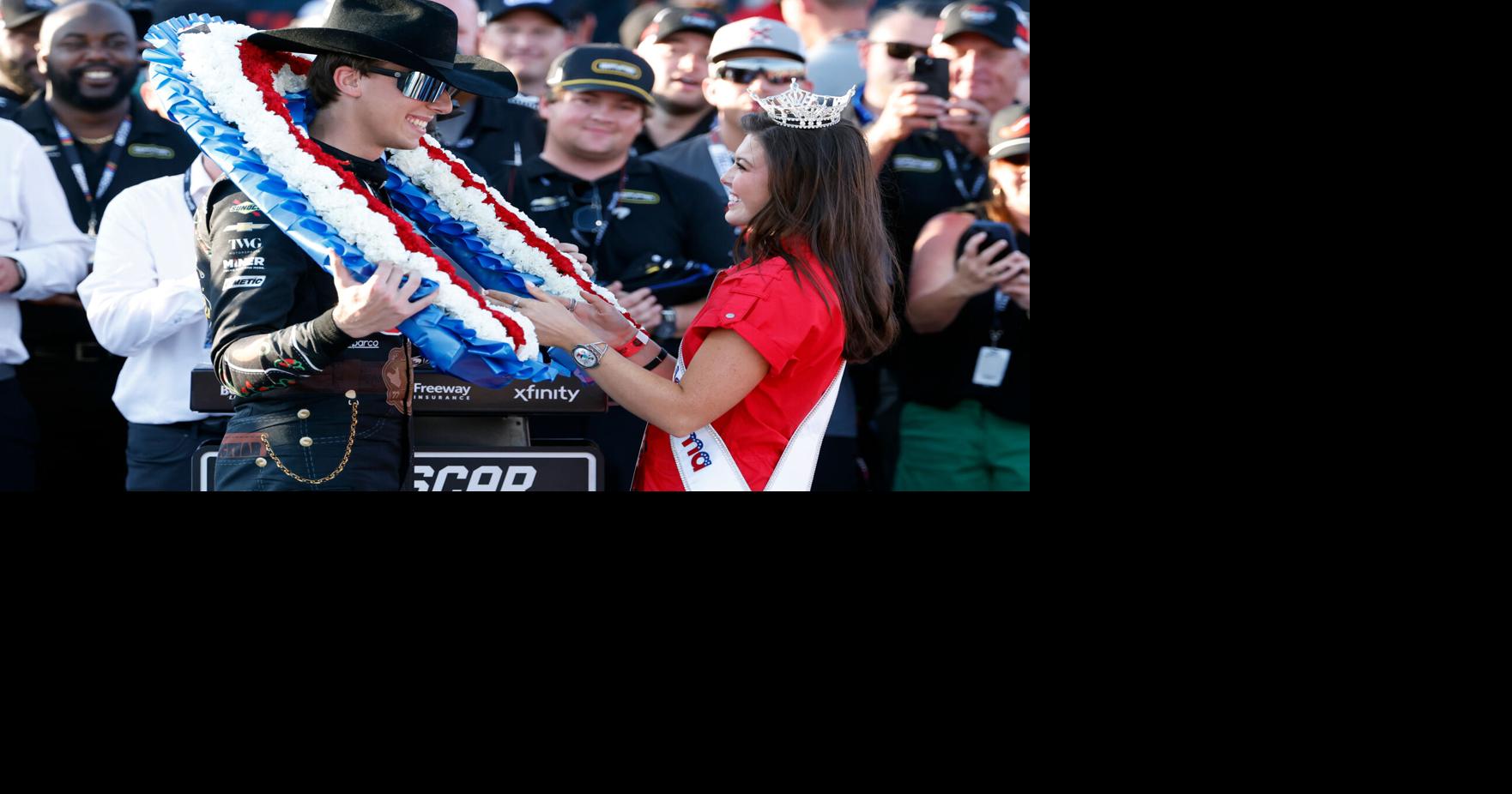 Carson Hocevar Wins NASCAR Cup Series at Talladega, Receives Wreath from Miss Alabama