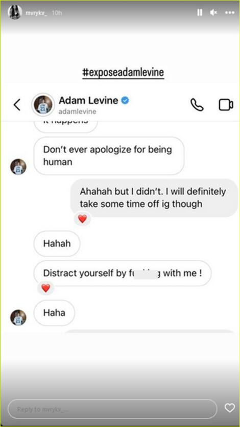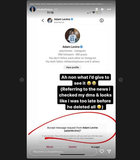 In a story she posted on Thursday, the young woman shared a screenshot of her Instagram inbox, in which she had a message request from Levine.