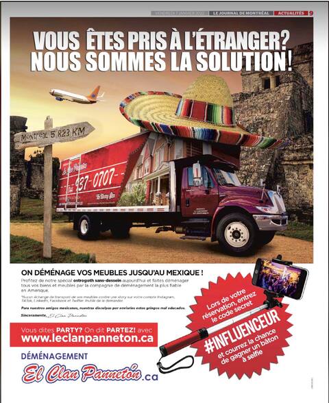 The prize goes to Clan Panneton, now El Clan Pannetón, which offers to move the furniture to Mexico and offers to enter a secret code to win a stick to selfie.