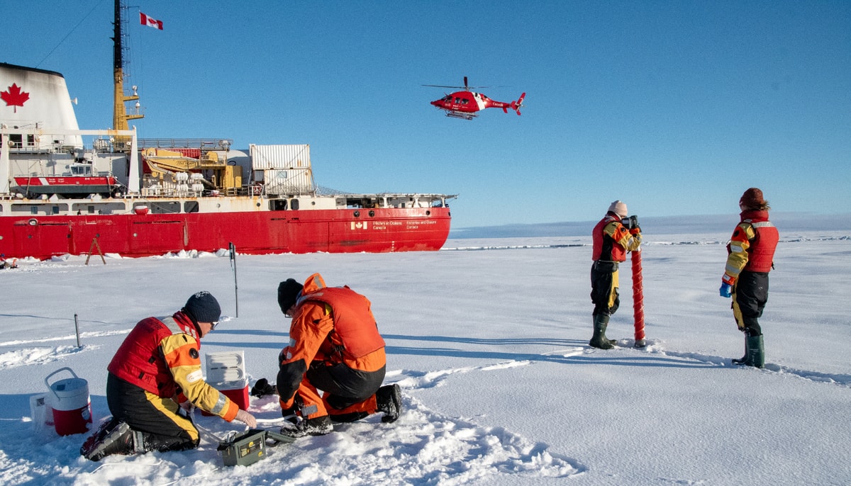Alexandre Normandeau,a researcher in marine geoscience at the Canada Geological Commission at Natural Resources Canada,was instrumental in collecting rock samples from the Otto glacier. Mission co-chiefs David Babb and Lisa Matthes coordinated operations from the vessel’s wheelhouse, overseeing the multidisciplinary team’s efforts. A dedicated team collected vital sea ice samples for analysis.