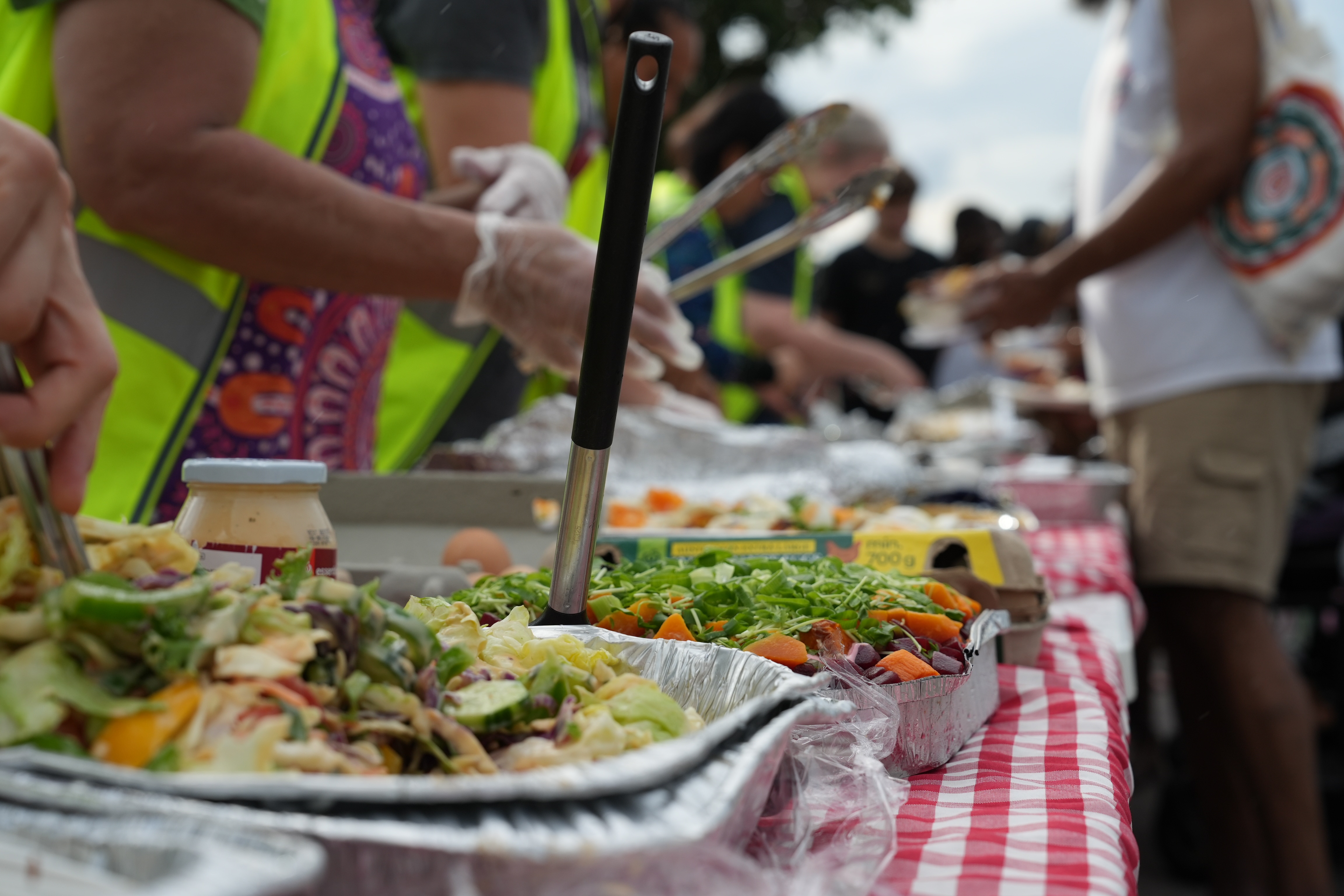 By late Sunday afternoon, the pool car park is transformed into a bustling buffet zone. volunteers lay out trestle tables and trays of dishes, turning the space into a community kitchen that ofen serves more than 150 people. the meals range from roast chicken and stews to salads and desserts,shaped by what ingredients are available and the volunteers’ skills.