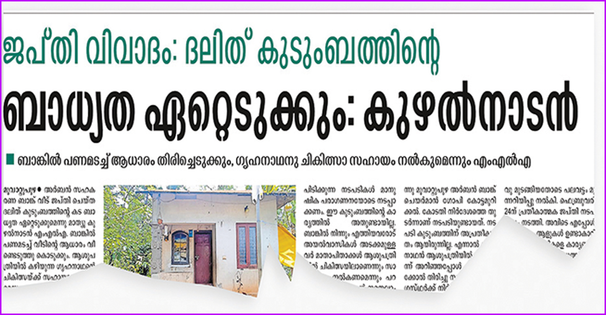Even following the incident became controversial, the bank officials took a stand justifying the foreclosure. Meanwhile, Mathew Kuzhalnadan MLA wrote a letter to the bank’s chief executive officer yesterday morning stating that he was ready to repay the family loan. Ajesh said the bank had not been notified that the employees’ union had repaid the loan.