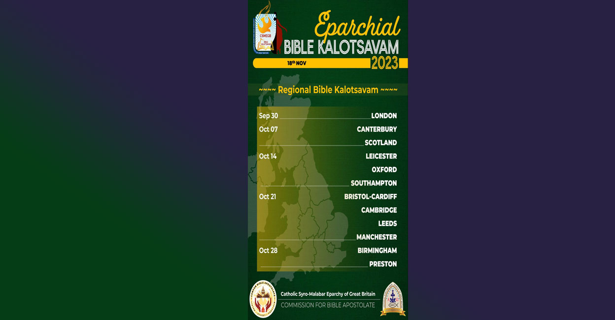 Birmingham. Regional competitions of Great Britain Syro-Malabar Diocese Bible Arts Festival competitions will start from today. The first regional match will be held today in the London region. The regional competitions will conclude on October 28 with matches in Birmingham and Preston regions.