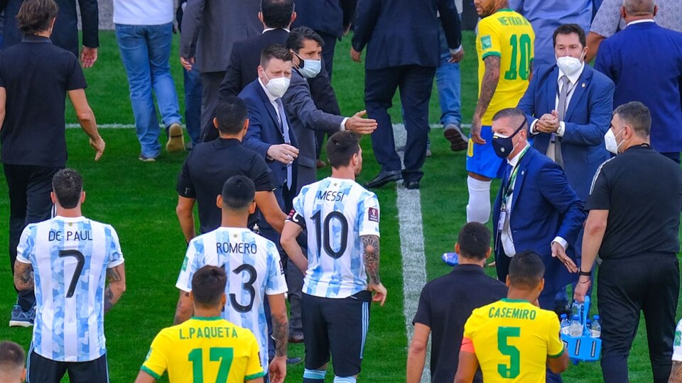 The match between Brazil and Argentina corresponding to the South American Qualifiers was suspended following 5 minutes of play on September 5 due to the entry of an armed Brazilian health agent who tried to remove the Argentine soccer players who came from England from the field.
