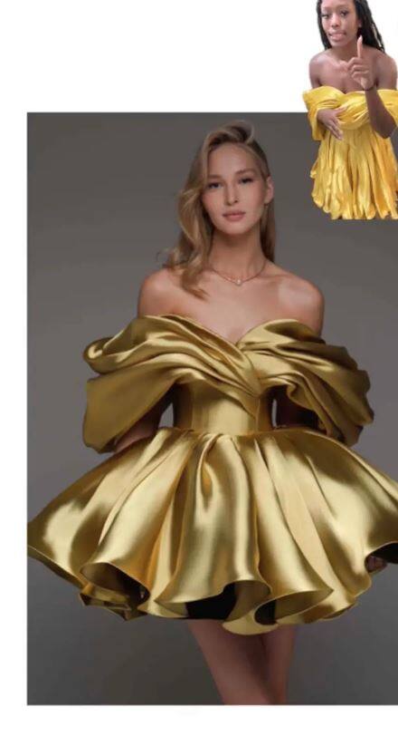 A fashion blogger who bought a gold, shoulder-padded evening dress from online retailer Cherley was stunned to receive a yellow dress which people were quick to slam.