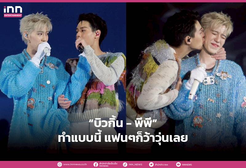 And of course, the moment that made everyone scream at the top of their lungs. It must have been the time when the young men “Biwkin” and “PP” sang together. The eyes that looked at each other, hugged each other, what? Not only that, there was also a shot where “Bewkin” kissed “PP” on the cheek. At this moment, everyone died. Project “PP” won by no more than TRUE The more you see the beautiful, long-lasting friendship of the two of them like this. It’s really good for the hearts of the people.