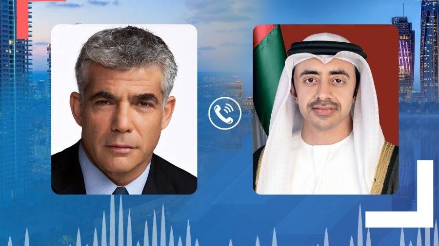 H.H. Sheikh Abdullah bin Zayed Al Nahyan, Minister of Foreign Affairs and International Cooperation, received a phone call from Yair Lapid, Minister of Foreign Affairs of the State of Israel.