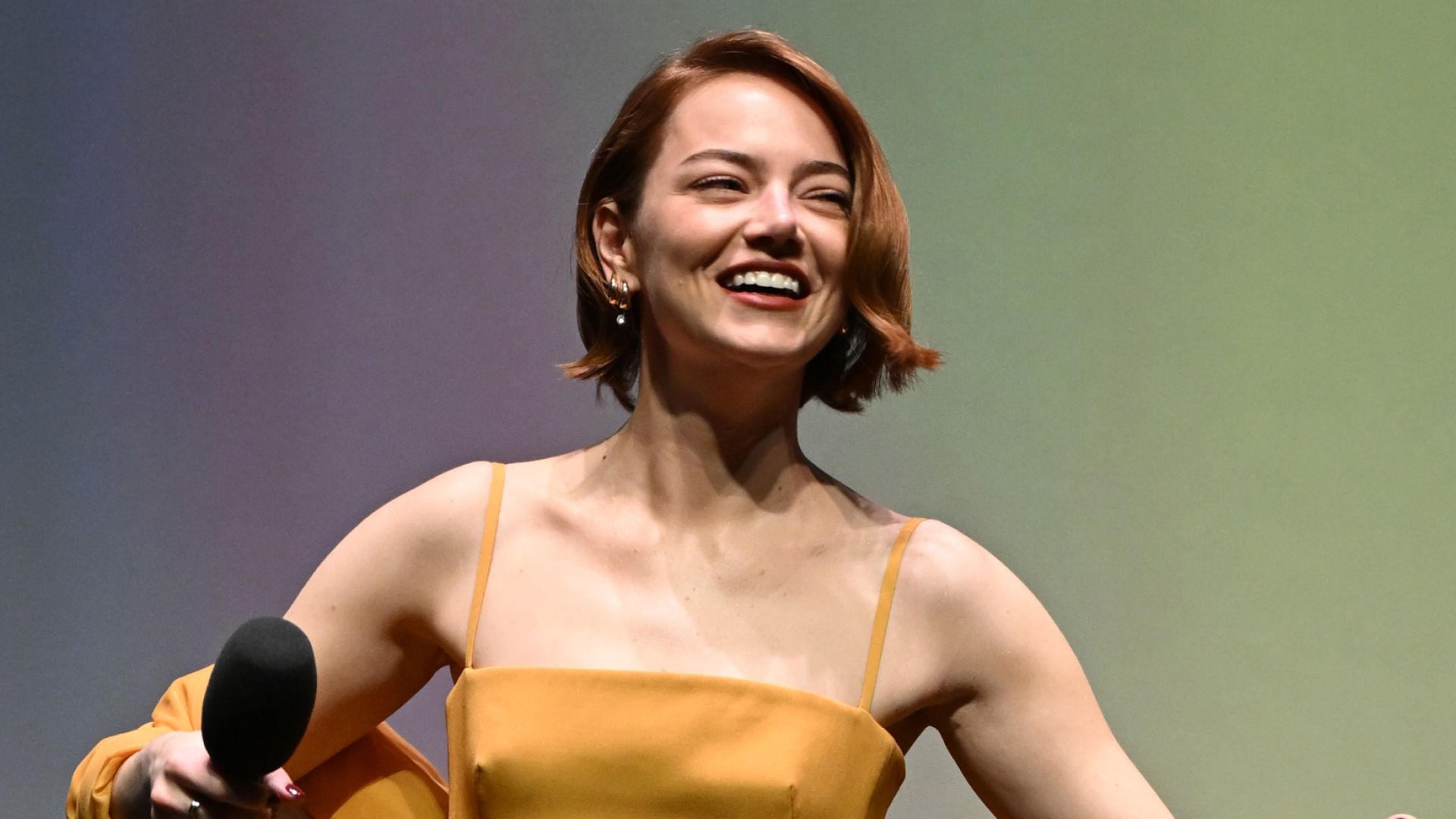 Emma Stone inside the Bugonia movie premiere.