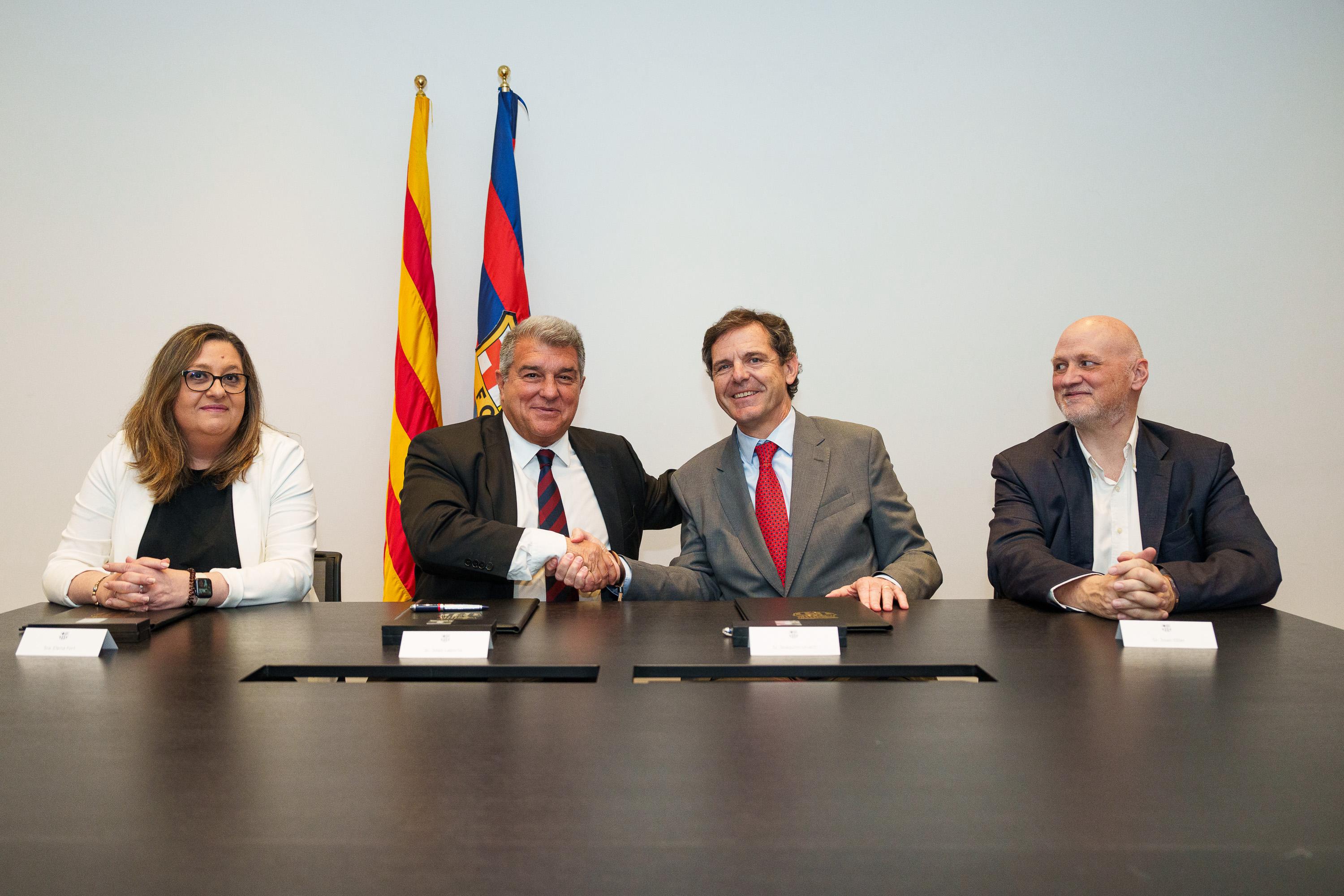 The renovation was made official in a meeting at the Lluís Companys Olympic Stadium in the preview of the match once morest Valencia, which was attended by Joan Laporta, president of FC Barcelona, and also by Elena Fort, vice president of the Institutional Area from FC Barcelona; by Joaquim Uriach, president of the Palau de la Música Catalana, and Joan Oller, the general director of the Palau de la Música Catalana.
