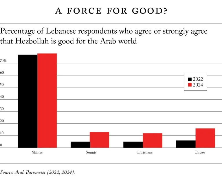 “Arab Barometer” polls show that despite Hezbollah’s great influence in Lebanon, relatively few Lebanese support Hezbollah.