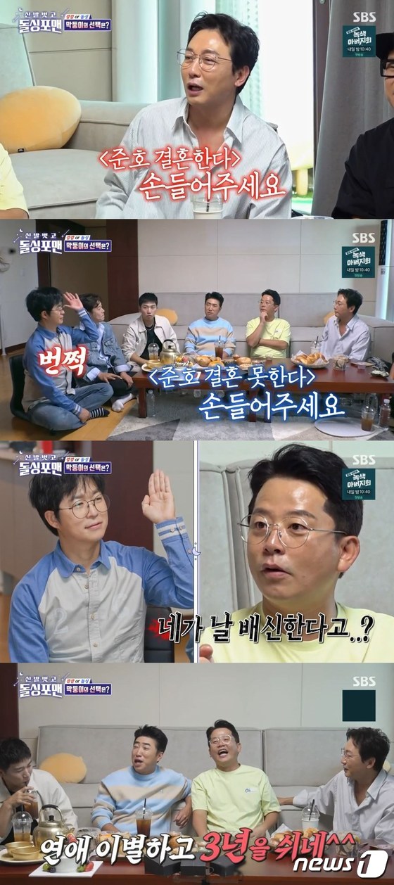 But Hong In-gyu had different thoughts. Hong In-gyu raised his hand saying, ‘I don’t think I can get married,’ and Kim Jun-ho opened his eyes wide, saying, “You’re betraying me?”