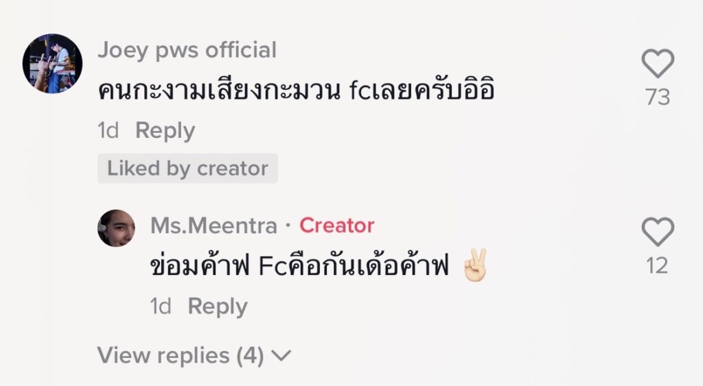 We will have to wait and see if the girl “Mintra” and the young “Joey” will have a picture together for the fans to scream once more. Or anyone who wants to follow in case they can see the cute moments of the couple once more, you can follow Meentra Indira’s Tiktok at @ms.meentra and Joey’s Tiktok at @joey..pws.