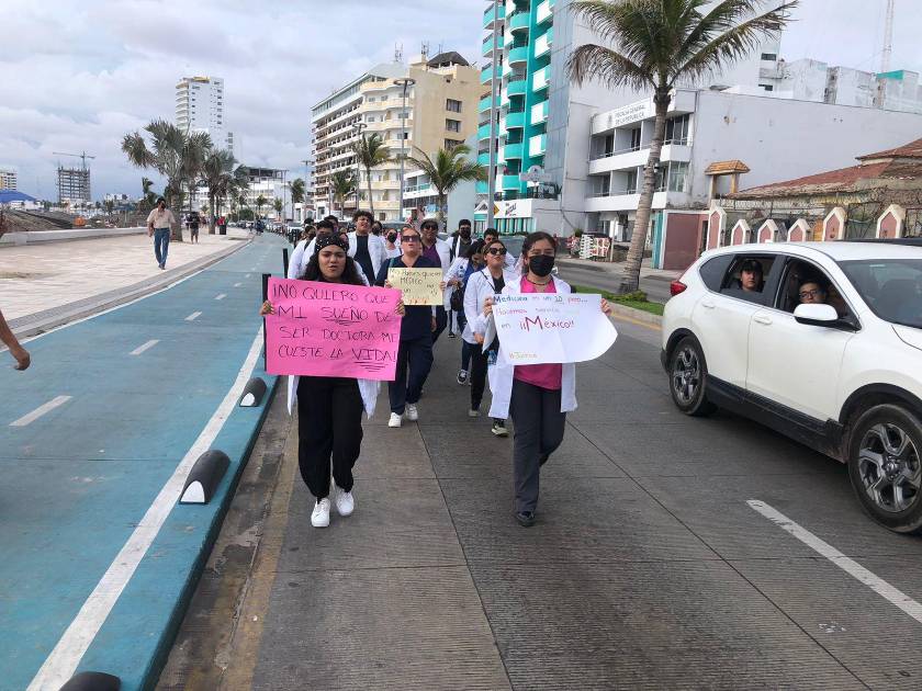 MAZATLÁN._ Dressed in their white coat and carrying cardboard where they demand security to carry out their studies, their social service and their work, and that they not take their lives, as happened with Dr. Erick Andrade in Durango, Medicine students in Mazatlán they carried out a peaceful march along the Malecón of the port, this Monday followingnoon.