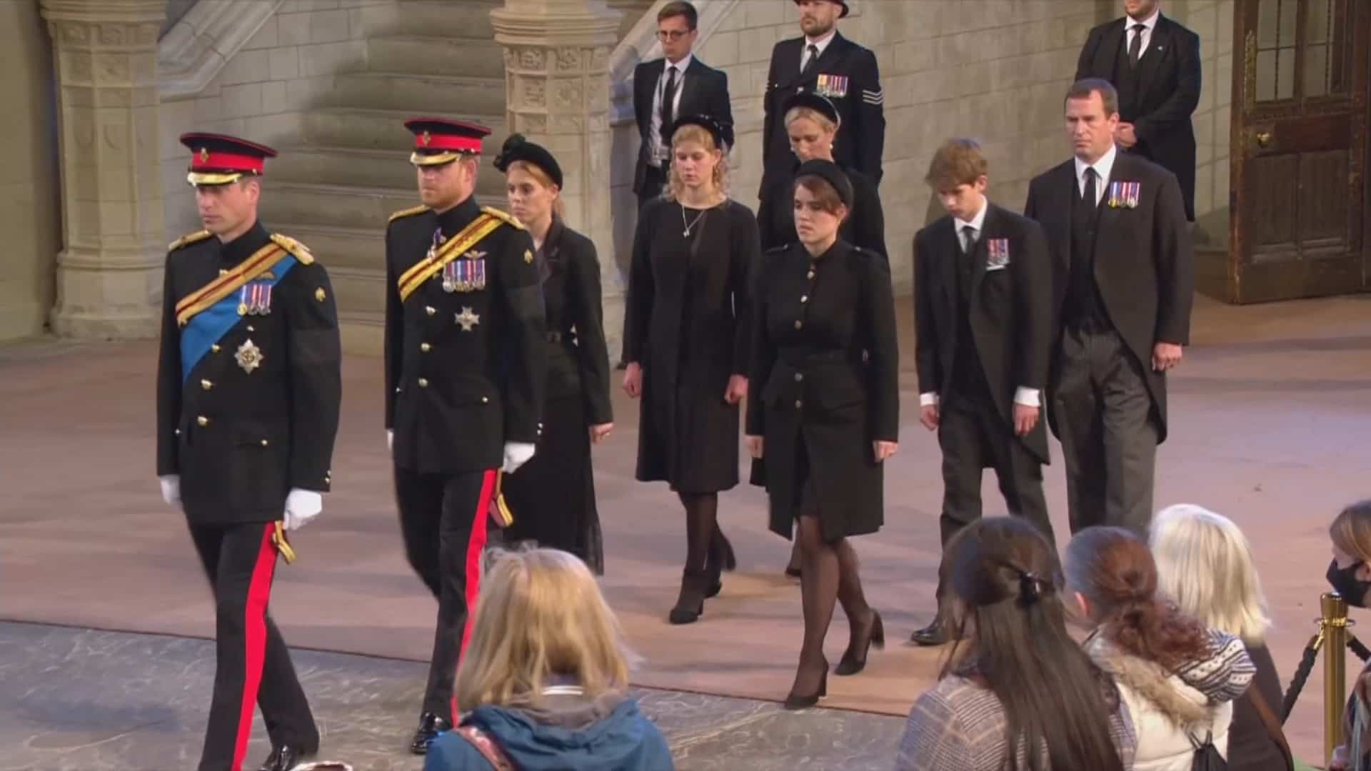 The queen’s grandchildren then left solemnly following a little over 15 minutes of meditation.