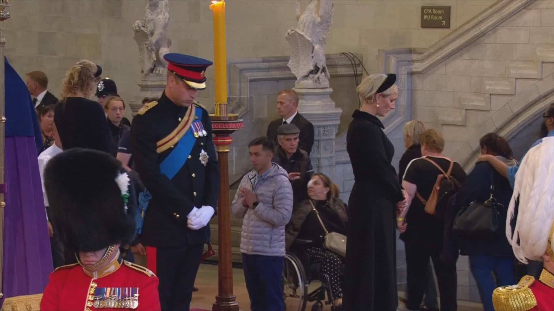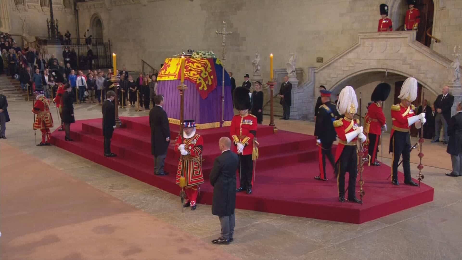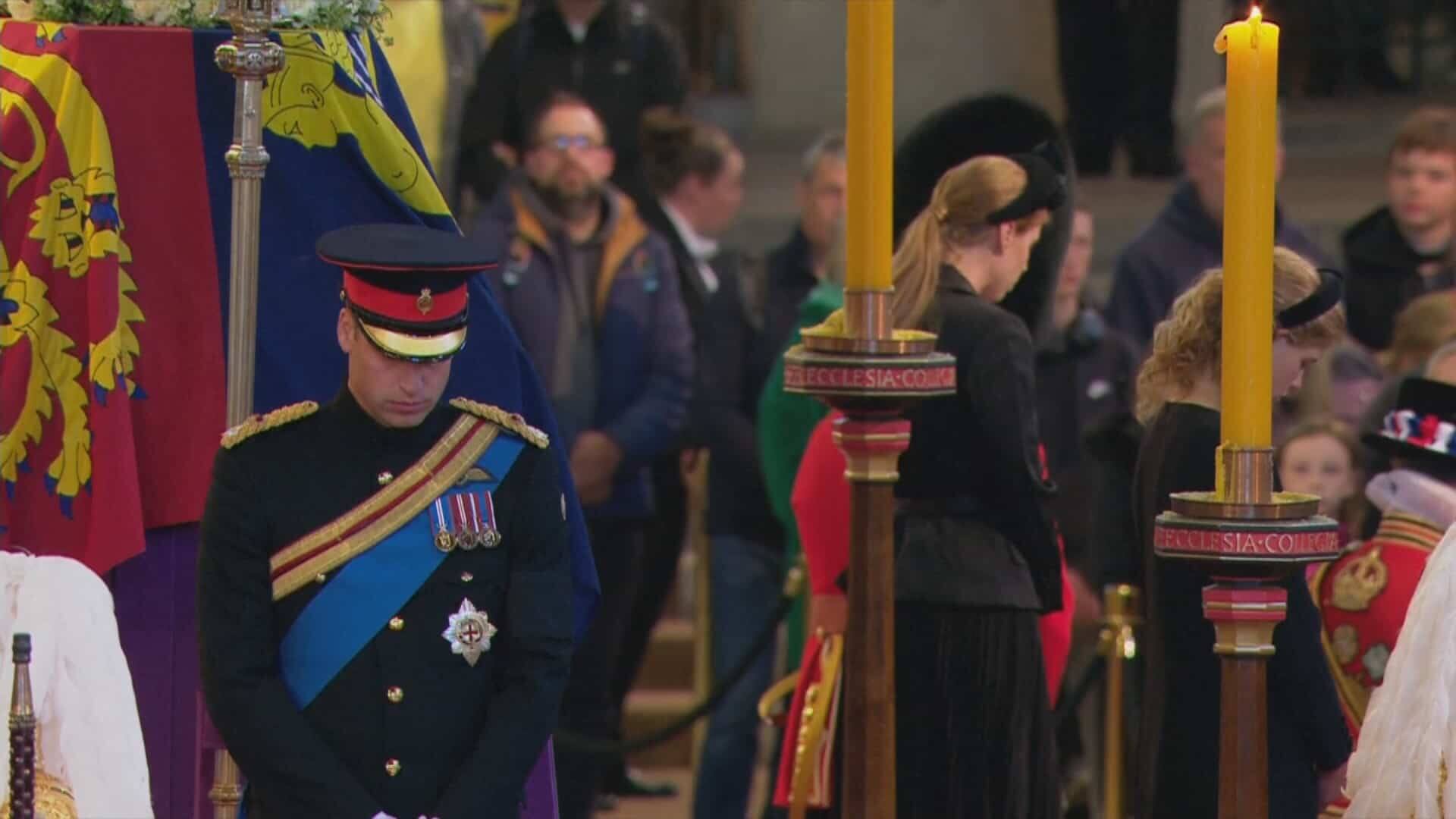 Often described as enemy brothers, the two sons of Charles III were in uniform – Harry no longer wore it since his resounding withdrawal from the monarchy – unlike their six cousins. They gathered at 6:00 p.m. in Westminster Hall, with their backs to the coffin and their heads bowed, under the gaze of visitors who came to bow before the remains of Elizabeth II, on display to the public until Monday morning.
