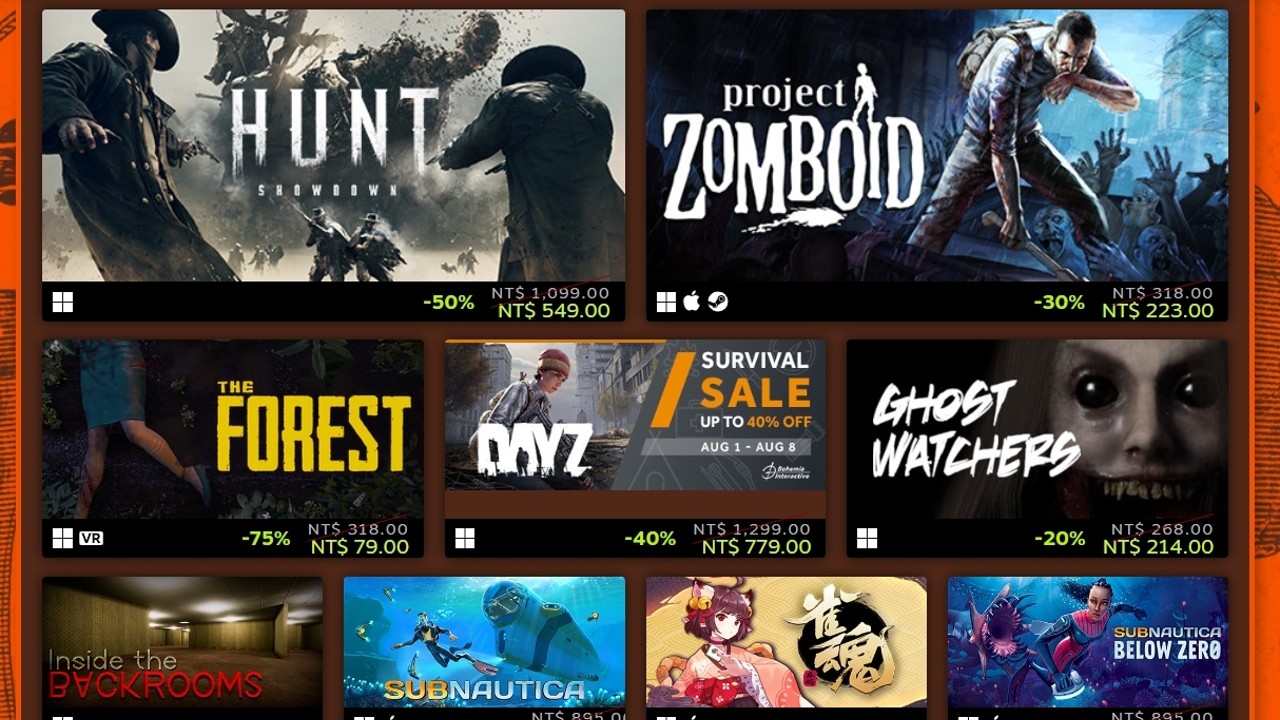 “Steam Survival Festival”It will be held for a week, from now until 1:00 am Taiwan time on August 9th, players can enjoy exploring the interesting survival game in the store.