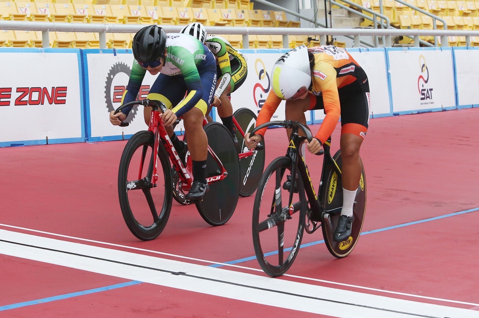 Sprint team total score award female youth Bangkok Sports School Team & Roojai 98 points, female youth version Bangkok Sports School Team & Roojai 96 points, female general The Royal Thai Police team 80 points, the young men’s version, the Bangkok Sports School team & Roojai 100 points, the young men’s version. Fisherman’s Friends Chiang Mai team 94 points, male people The Royal Thai Army Bicycle Team 92 points / Total Points Award for the Persut Team, Youth Men’s Team, Bangkok Sports School Team & Roojai 96 points, Youth Men’s Model Fisherman’s Friend, Wing 46 Phitsanulok 96 points, male public version National Police – Koki team 96 points
