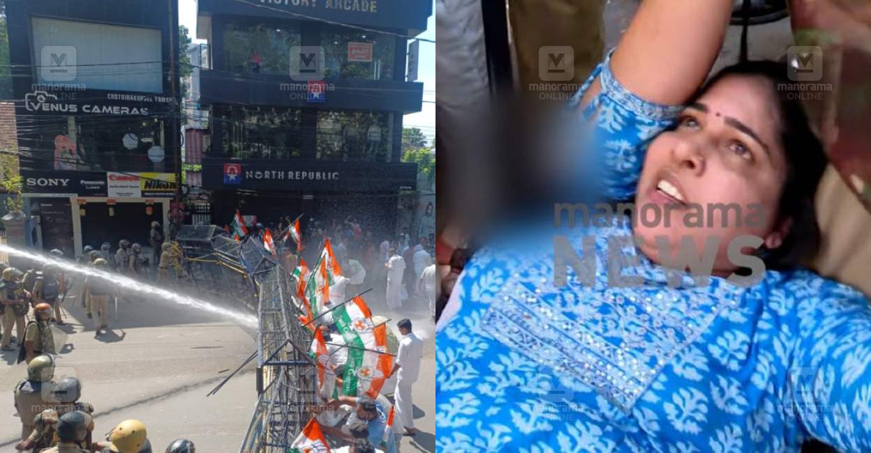 Kannur ∙ Clash during the Youth Congress march to the Collectorate to protest the arrest of Rahul Mangkoothil. Four people, including two women workers, were injured. As soon as the activists came to protest, the police used water cannons. Due to this, the youth congress workers and the police got into an altercation and the subsequent clash resulted in lathis.