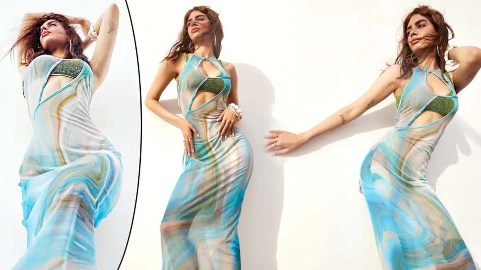 Khushi Kapoor’s pictures became viral very quickly. The pictures of her wearing a bright green bikini in a blue mesh bodycon dress became a hit with fans.