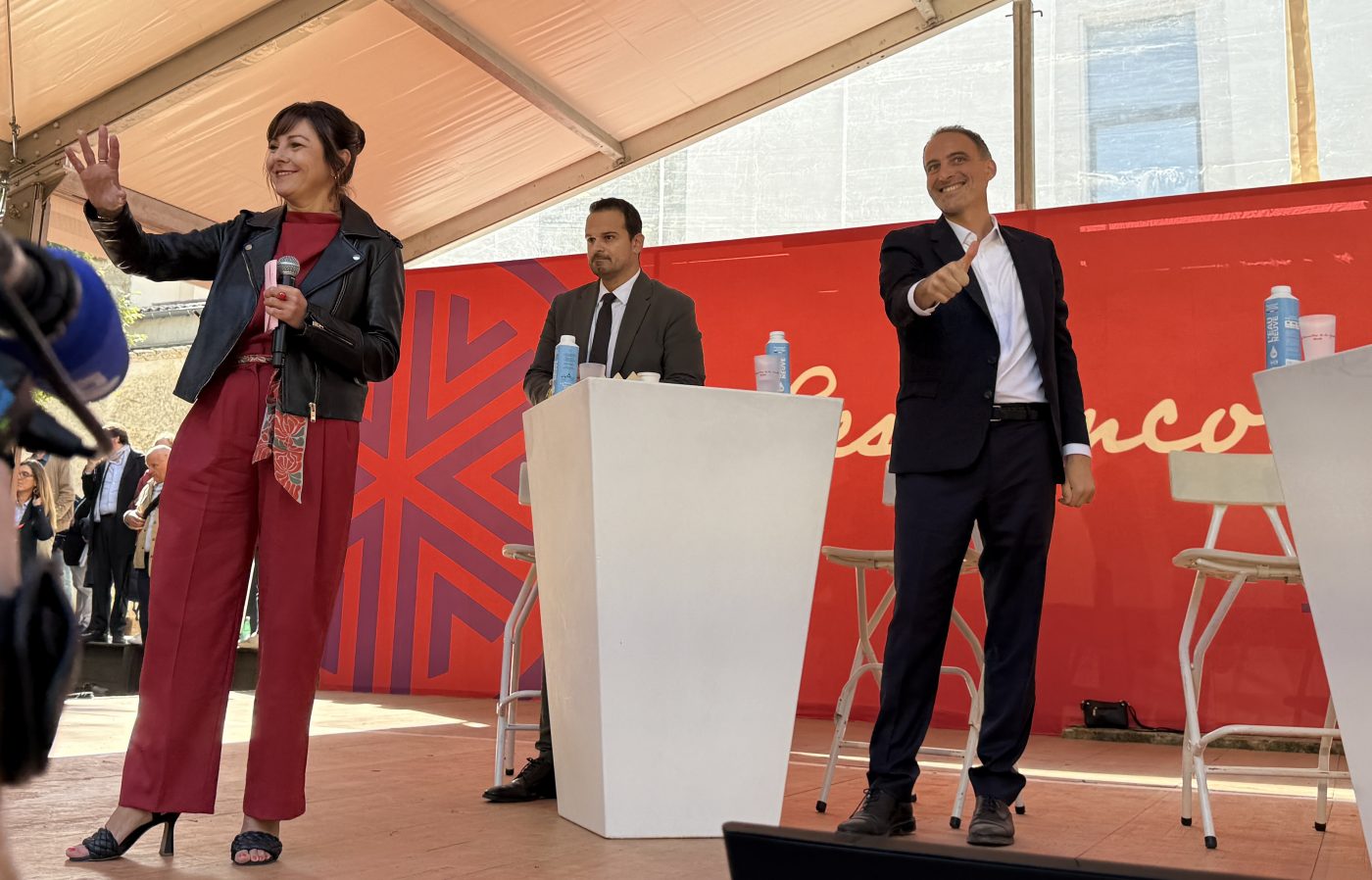 Carole Delga and Raphael Glucksmann at the Bram Meetings. (Photo: Olivier Schlama)