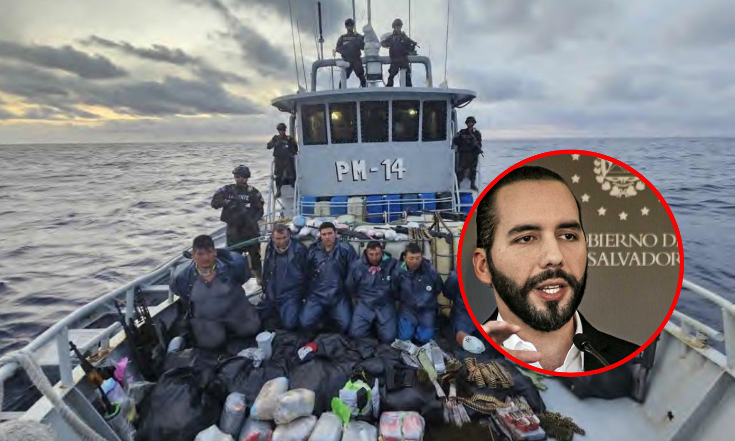 The National Navy of El Salvador seized a arsenal (with different types of weapons) that was carrying a speedboat from Mexico with apparent destination to Ecuador y 1.2 tons of cocaine on Ecuadorian vessels sailing in the waters of the Pacific, Salvadoran President Juan Carlos I reported on Friday, Nayib Bukele.