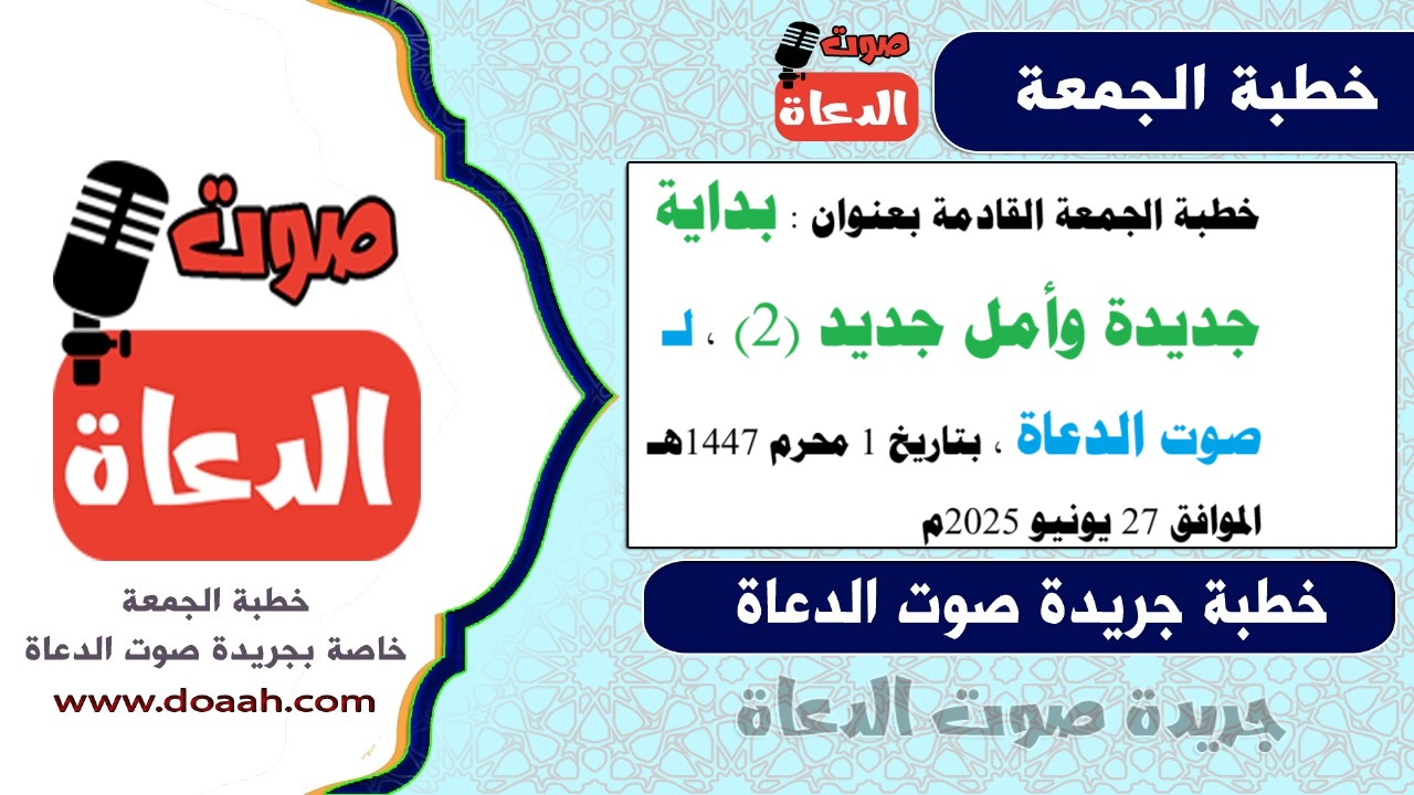 Next Friday Sermon Entitled: A New Start And A New Hope To Preacher On muharram 1, 1447 AH, corresponding To June 27, 2025 AD.