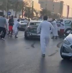 Al-Zaidan said that following 3 minutes, he was surprised by the owner of the car, returning in the same direction, reversing the movement at full speed, trying to escape from the traffic.