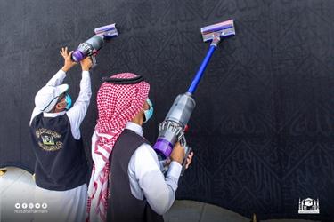 The General Presidency for the Affairs of the Grand Mosque and the Prophet’s Mosque has used a smart suction machine to clean and disinfect the garment of the Kaaba.