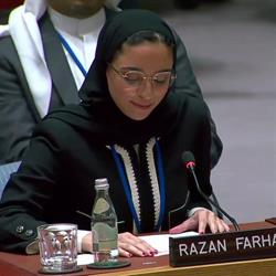 Saudi Arabia, Razan Al-Aqeel, participated in one of the high-level sessions of the UN Security Council, representing the youth of civil society.