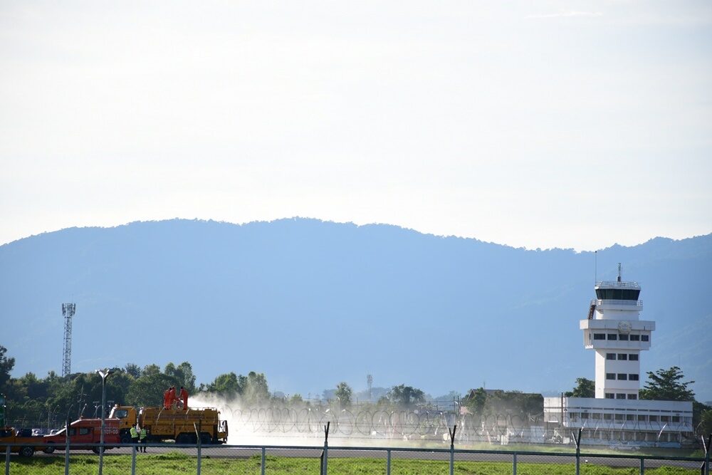 The operation of the moving team is under the supervision of a team of skilled engineers. After this, the Committee of the Department of Civil Aviation will conduct an internal inspection of Mae Fah Luang Airport at the runway following the runway surface has been cleaned to see if it can be opened for flights this evening or not.