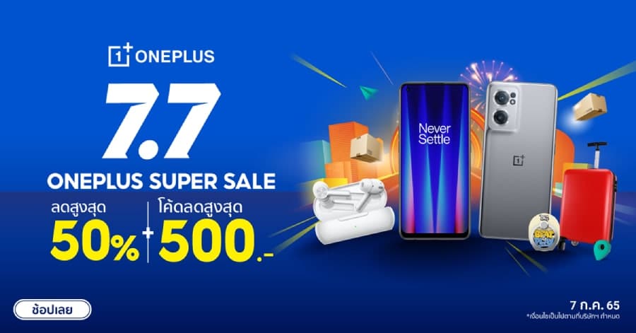 Invite shopping to welcome this July with OnePlus 7.7 Super Sale, smartphones and hot items, discount up to 50% and give away additional coupons, discount up to 500 baht, OnePlus Nord CE 2 5G, reduced to only 11,590 baht with free minimum delivery 3,999 baht, only on July 7, 65, one day only! OnePlus official store: https://bit.ly/3ucPHOa on Shopee