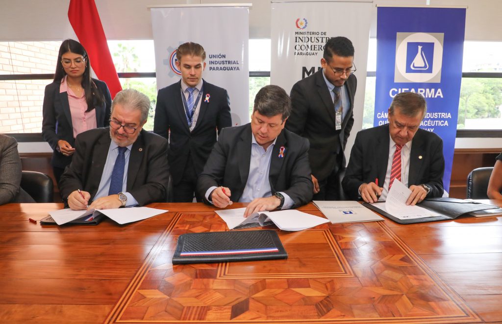 Asunción, IP Agency.- The Ministry of Industry and Commerce (MIC), the Paraguayan Industrial Union (UIP) and the Chamber of the Pharmaceutical Industry of Paraguay, signed an agreement that aims to strengthen the national pharmaceutical industry, through the improvement of technical areas and the development of a study that reflects the reality of our country.
