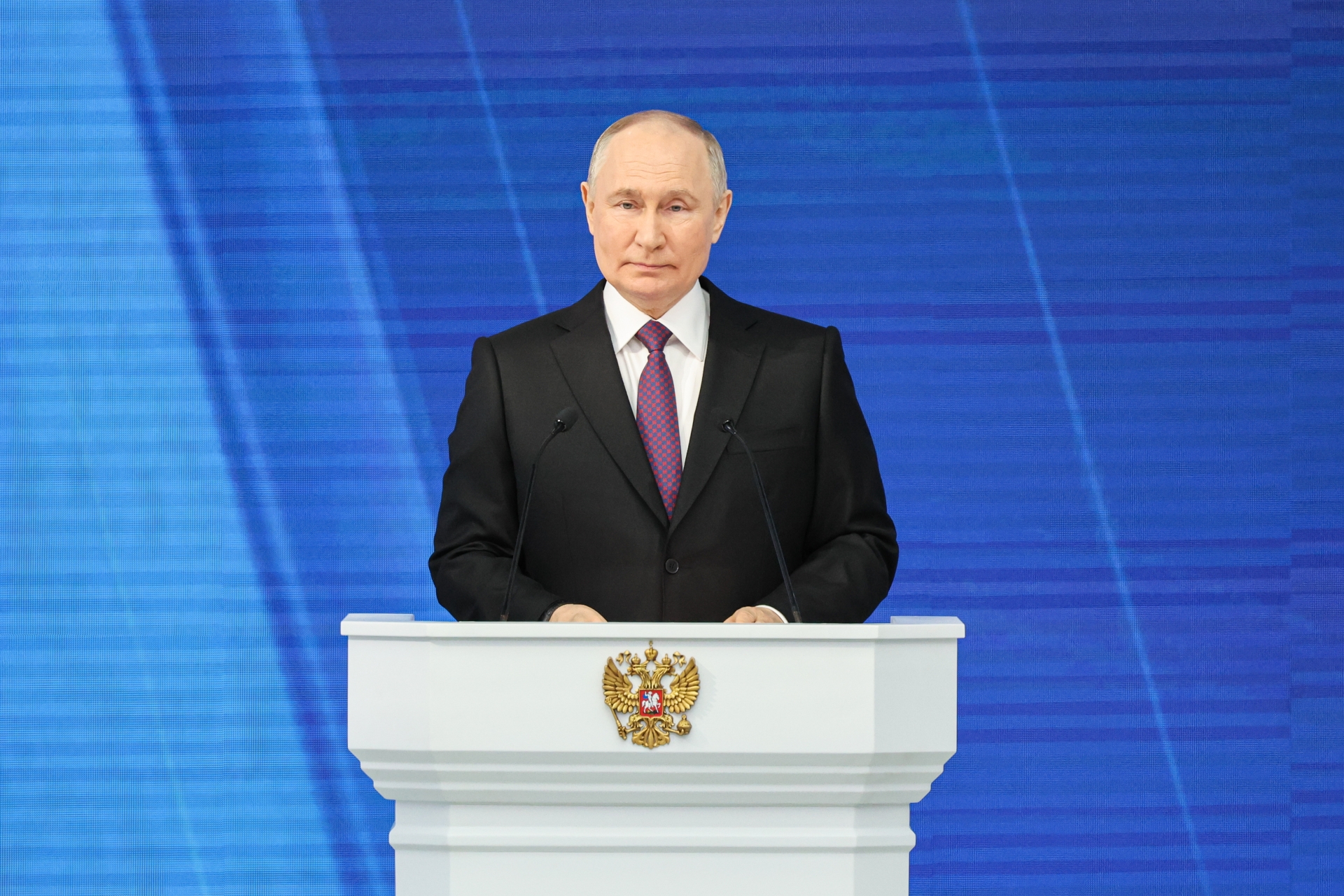 ▲ Photo of Putin giving the State of the Union speech: Yonhap News