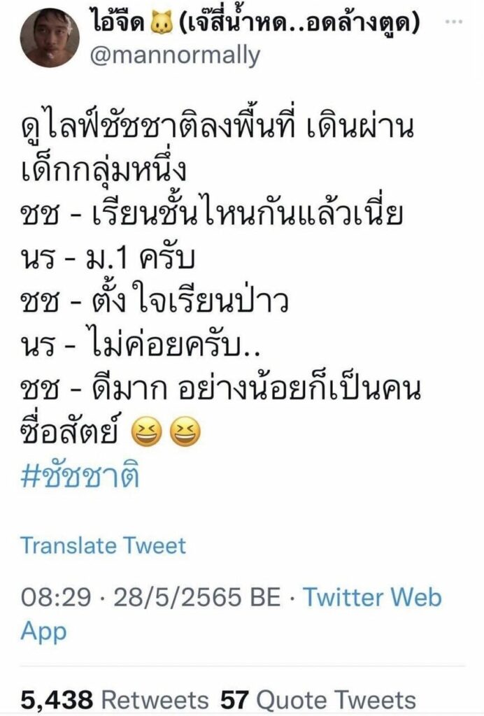 Look back at the minute clip. #Chatchat Watch the students in grade 1 “There is honesty,” following the male student said. “Not hard to study” #Matichon Online pic.twitter.com/6wWQtE0nKb