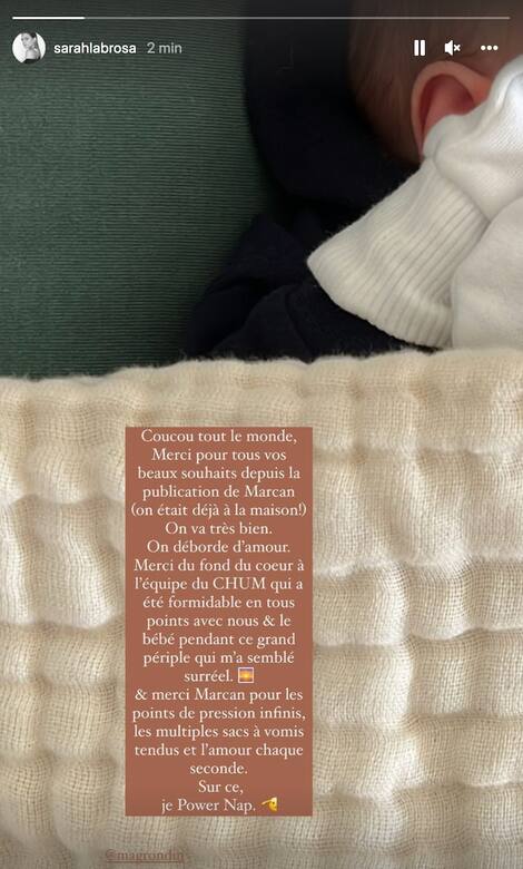 Actress Sarah-Jeanne Labrosse has given birth to her first baby. She confirmed the whole thing in an Instagram “story” on Wednesday.