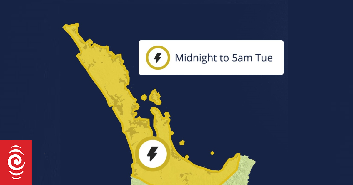 The MetService has issued a Severe Thunderstorm Watch for a meaningful portion of the upper North Island. The warning, effective until 5 a.m. Tuesday, encompasses Northland, Auckland, Great Barrier Island, the Coromandel Peninsula, Waikato, Bay of Plenty, and Rotorua. Forecasters predict localized downpours with potential rainfall rates of 25 to 40 millimeters per hour, coupled with the risk of thunderstorms.