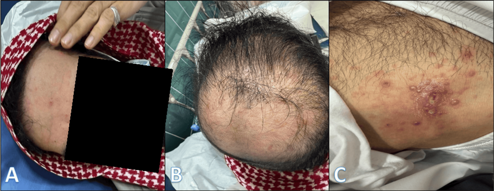 - Patient: 42‑year‑old male, no chronic illness, presented with 2 days of fever and diffuse vesicular rash plus a unilateral thoracic dermatomal eruption.