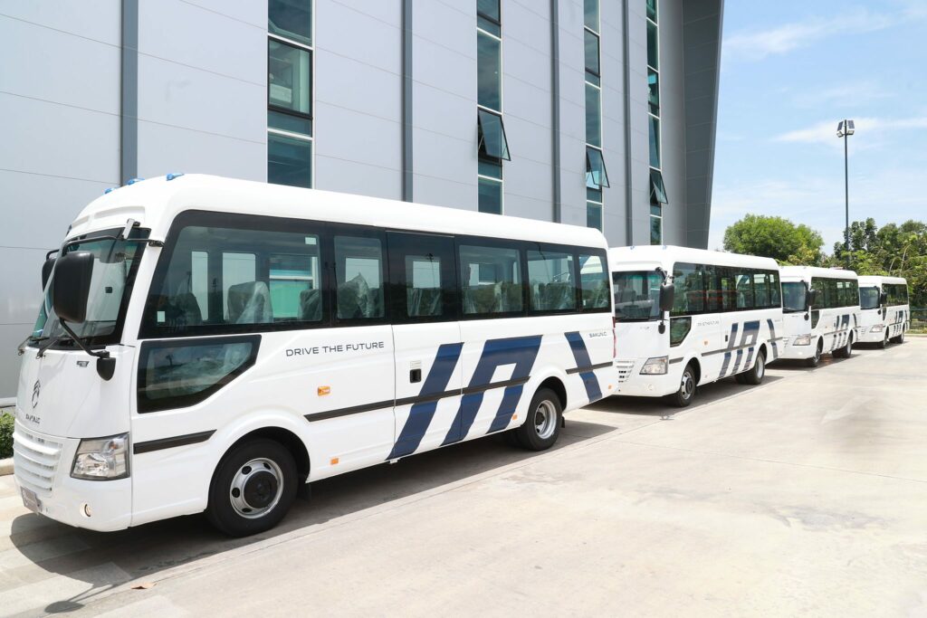 Mr. Namchai Sakulchoknamchai Chairman of Chok Namchai Group Co., Ltd. said that he has joined hands with Hino Motors Sales (Thailand) to launch an aluminum minibus brand Sakun.C, model “C-Bus”, size 7 meters, 20 seats, officially by the dealer. Hino 105 branches across Thailand This event was honored by Mr. Arkhom. Fill Pittayapaisith Minister of Finance presided over the car release ceremony and started the production line and consisted of a robotic system At the Thai modern vehicle factory in the Chok Nam Chai Group, Suphan Buri Province, Sakun.C has become an official Thai car camp. The car is designed with advanced engineering. There are molds and parts production, body and chassis production, with a car assembly license that can legally issue a VIN no. and tested in an international format including distribution channels and following-sales service all over the country, as well as gaining confidence from Viriya Insurance with the best protection offer and the Eastern Commerce Leasing organized a campaign for unprecedented installments of up to 12 years.