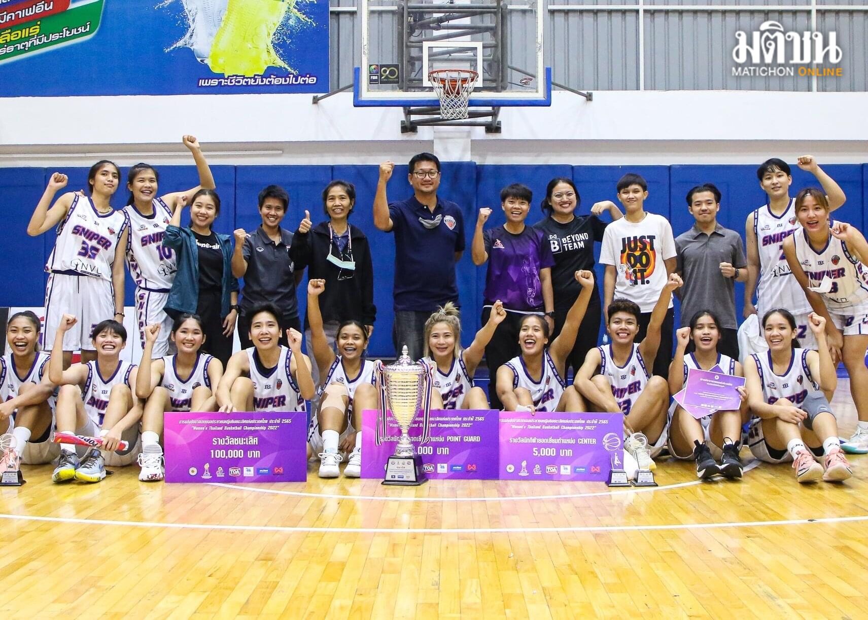 Resulting in a total of two games in the final, the sniper defeated 2-0, winning the women’s basketball championship. The final of Thailand for the year 2022 with a prize money of 100,000 baht. Received a prize of 60,000 baht. The third position was the way Chulalongkorn University defeated Dhurakij Pundit University. Go to the third round with a score of 90-72, receive a prize of 40,000 baht and 4th place, Dhurakij Pundit University Received a prize of 20,000 baht