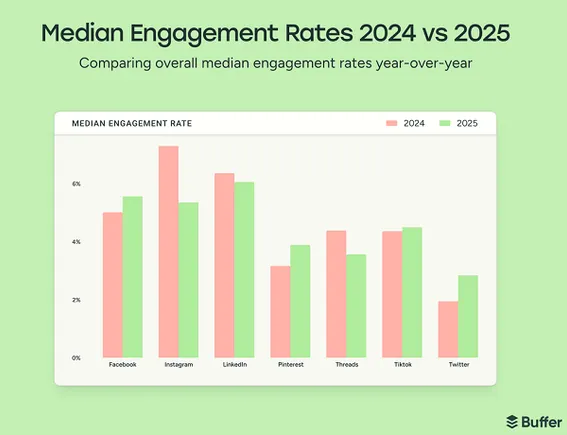 Social Media Engagement 2025: Instagram, LinkedIn & Threads Decline – Buffer Report