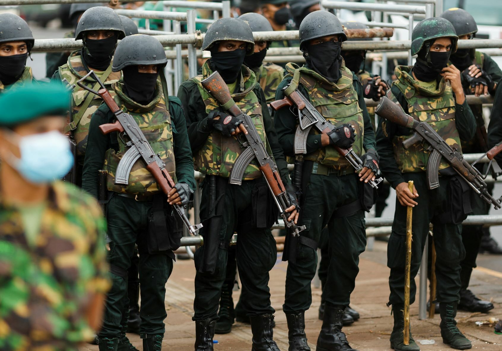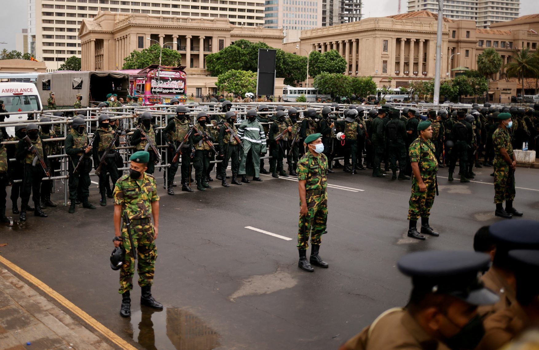 Sri Lankan security forces stand behind barricades. face the people near the office of the presidential secretariat in Colombo Sri Lanka After the demolition of a protest camp on July 22 (Archyde.com)