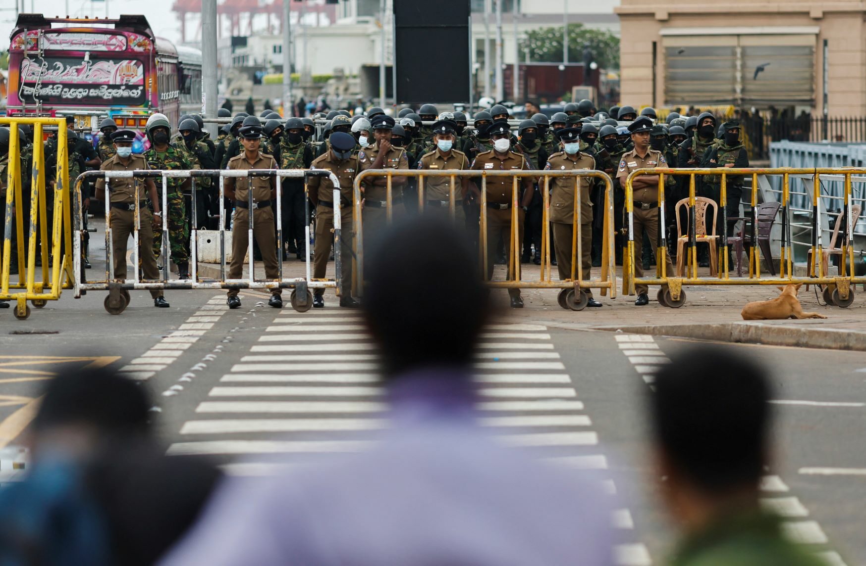 Sri Lankan security forces stand behind barricades. face the people near the office of the presidential secretariat in Colombo Sri Lanka After the demolition of a protest camp on July 22 (Archyde.com)