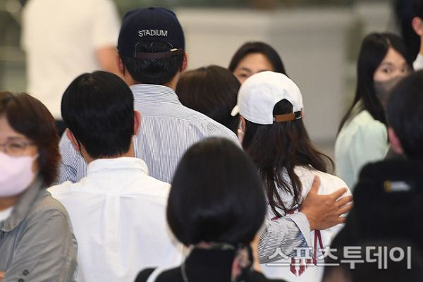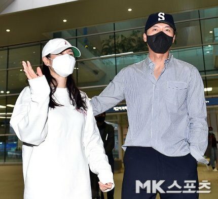 while the Korean media They went to take pictures this time. which the couple revealed a picture of embracing each other before waving to the fans and get out of the car
