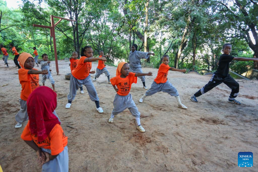 Tanzanian children practice Chinese kung fu in Dar es Salaam, Tanzania, on May 18, 2025. (Xinhua/Emmanuel Herman)