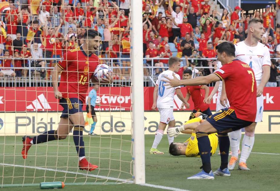 At the “La Rosaleda” stadium, and following Spain took possession without any danger, the first threat came from the guests first through a powerful, creeping shot from outside the area by Vaclav Cherny, which was removed by Simon (18), and then another for striker Jan Kosta, who received the ball from a rebound and penetrated To the left side inside the area, a strong shot was taken by the goalkeeper to a corner (20).
